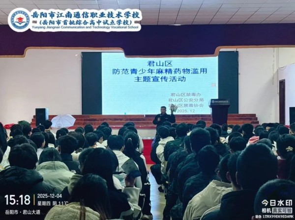 為切實加強青少年毒品預防教育,提升學生識毒、防毒、拒毒意識與能力,12月4日,君山區(qū)禁毒辦攜手君山區(qū)公安分局禁毒大隊、君山區(qū)禁毒協會,共同走岳陽市江南學校開展主題鮮明、形式多樣的禁毒宣傳活動,為全校師生筑起一道堅實的“無毒”青春防線。